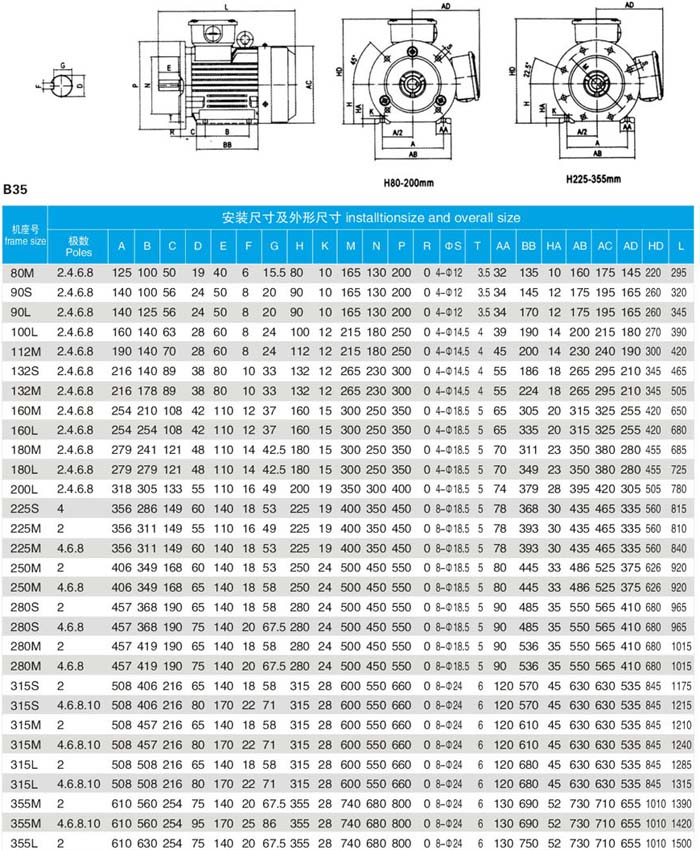 機(jī)座號:H80~355